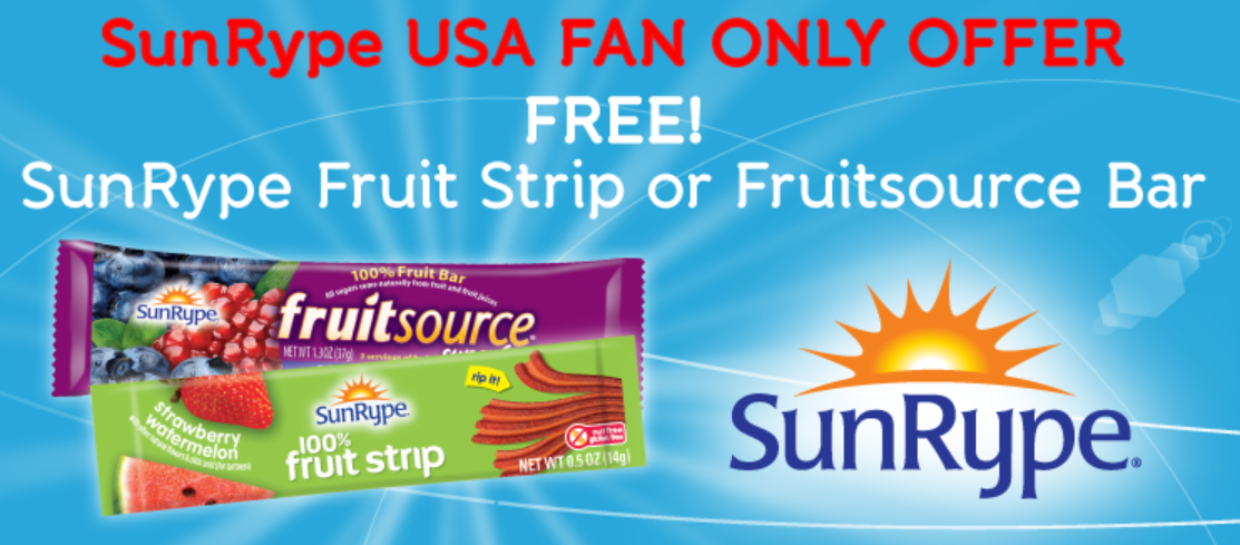 The first 20,00 fans to request will receive a coupon for a free Fruit Strip or FruitSource Bar from SunRype USA.